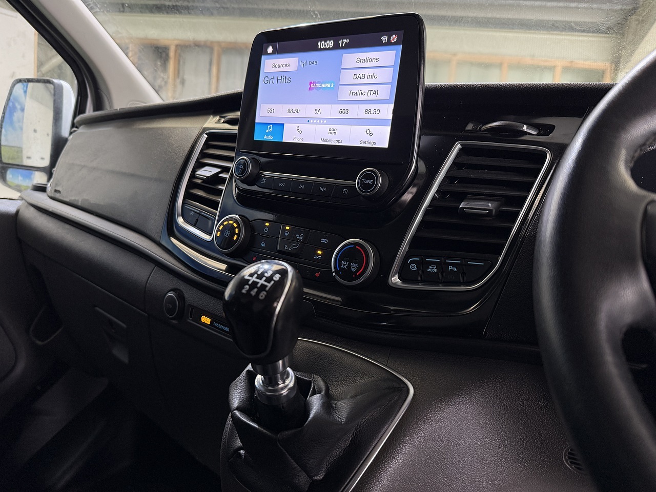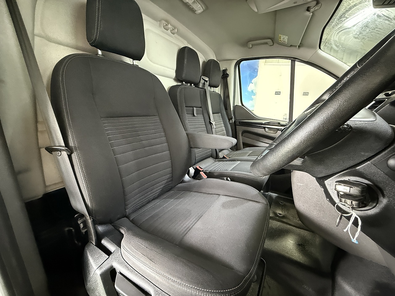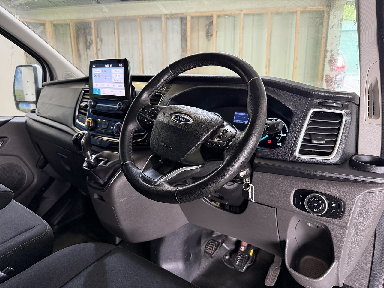 Equipped with a range of features, this Transit Custom includes 16in alloy wheels, cruise control, automatic headlights, rain-sensing wipers, and Ford Eco Mode driver information system. The interior boasts an 8-way adjustable driver's seat with armrest, front manual air conditioning, leather-trimmed steering wheel, and SYNC3 audio system.